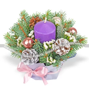 Новогодняя романтика - коробка с розовыми розами и эустомой