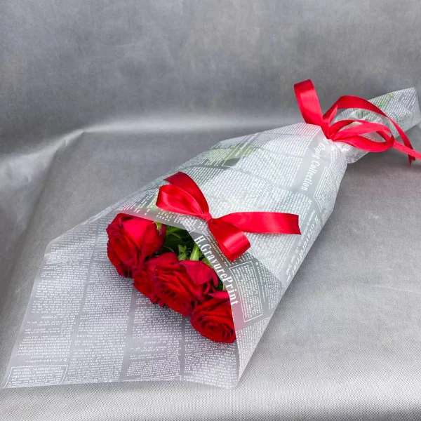Букет из красных роз в оформлении (высота стебля 60 см)